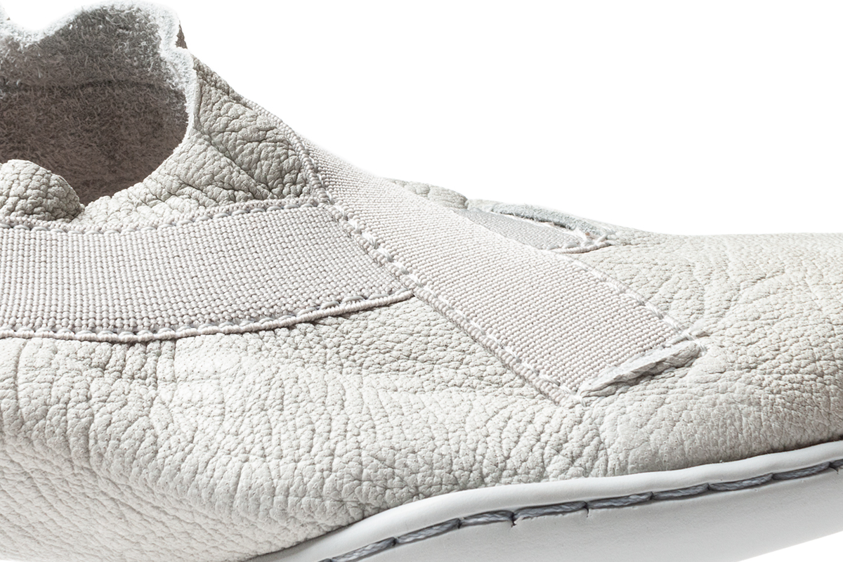クロムなめしのエルク(もしくはシカ科)レザー。表面は入念にシュリンク加工を施されています。履き心地が良く非常に柔らかく柔軟性があります。履き込むことで柔らかくなり、また伸びる場合があります。傷や擦り傷、汚れに敏感です。一般に他のレザーより劣化が早い傾向にあります。