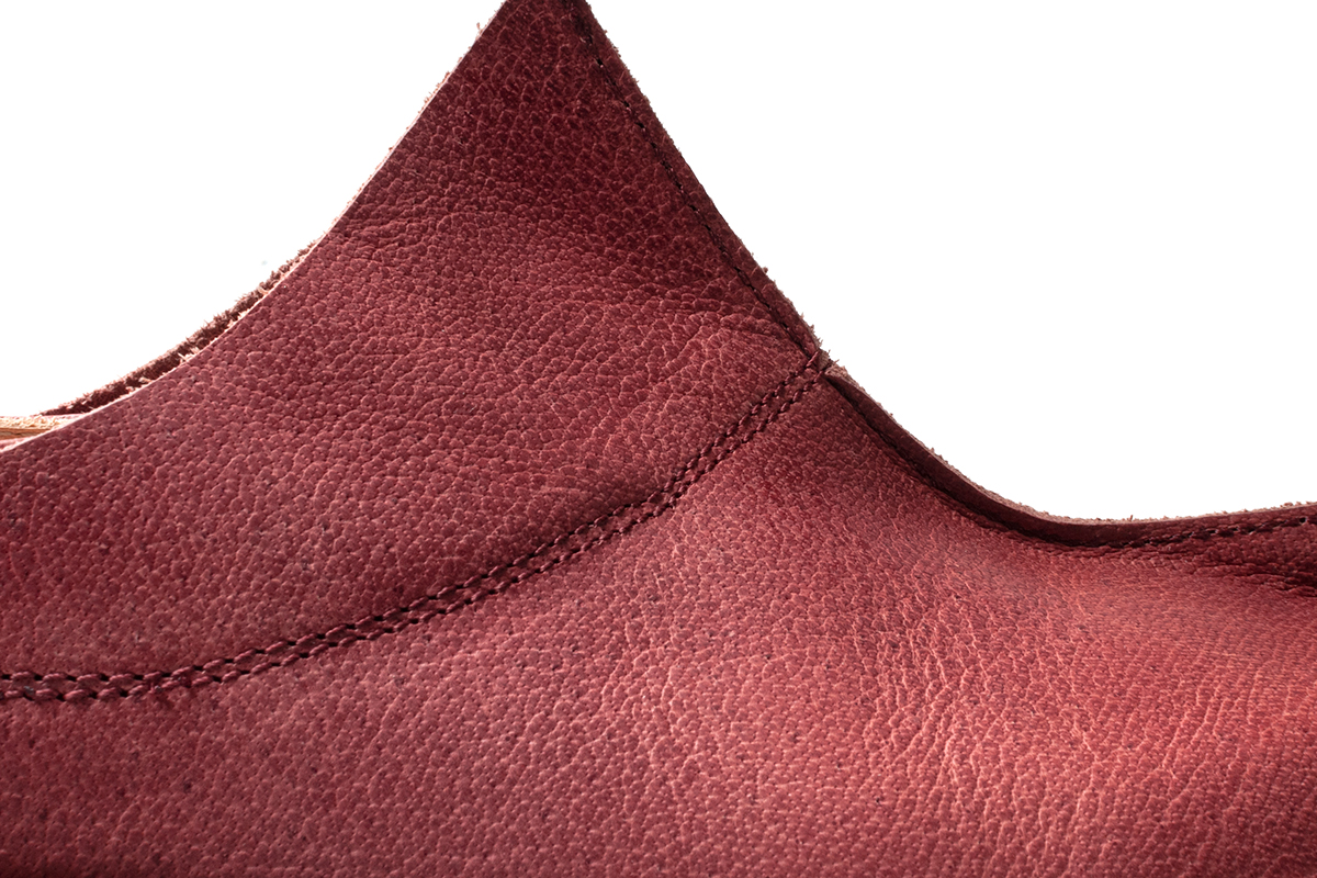 ベジタブルタンニンなめしの水牛革で、オイルとワックスを含みプルアップ効果があります。 革の傷や不規則性はこの革の特徴です。着用と日光により濃い色合いに経年変化します。染色が色移りすることがあります。