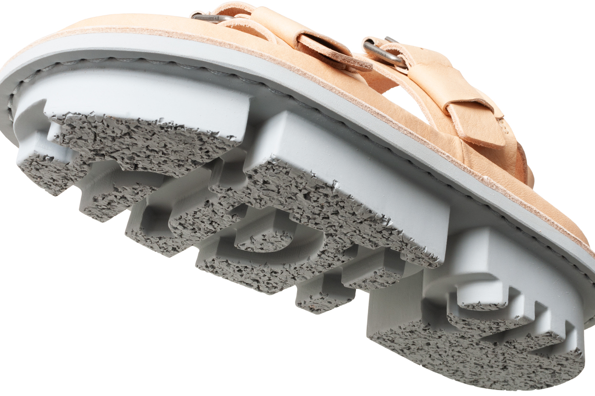 「Closed」コレクション。 耐久性のある解剖学に基づいた形状のソールです。ソール交換可能。 「Trace」は、組成の最大30%を生産余剰からのリサイクルゴムで作られています。 このソールはUNI EN ISO14855規格を満たし、植物毒性がない場合は6か月以内に34,53%の生分解度であることにより、「マイクロプラスチック」の問題について対処しています。 またリサイクルというテーマが、ゴムを粒状にした造りによって外観的に視覚化されています。 レディースサイズのみ展開しています。ソール高3cm。 ゴムソールに含まれる配合剤が表面に現れ、ソールが白く曇ったように見える場合があります。この状態も品質には問題がありませんのでご安心ください。