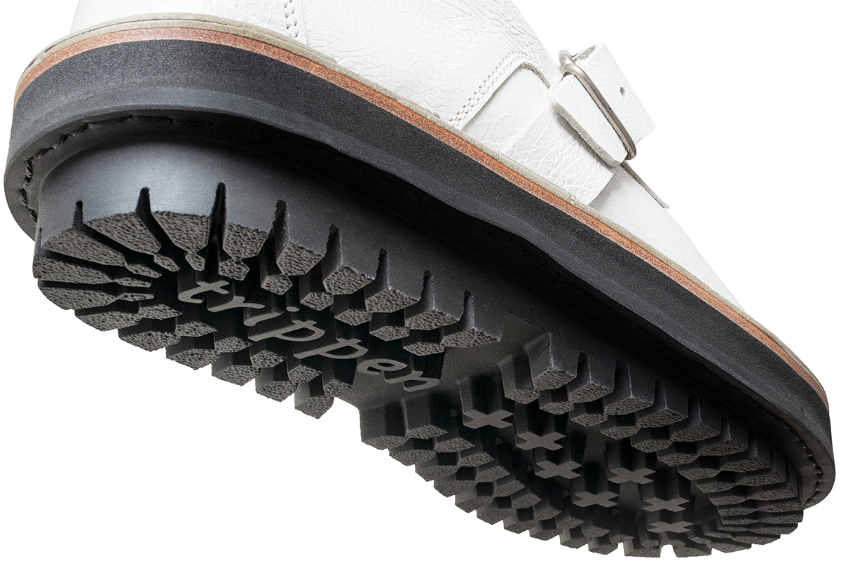「Closed」コレクション。 ゴムソールに含まれる配合剤が表面に現れ、ソールが白く曇ったように見える場合があります。この状態も品質には問題がありませんのでご安心ください。