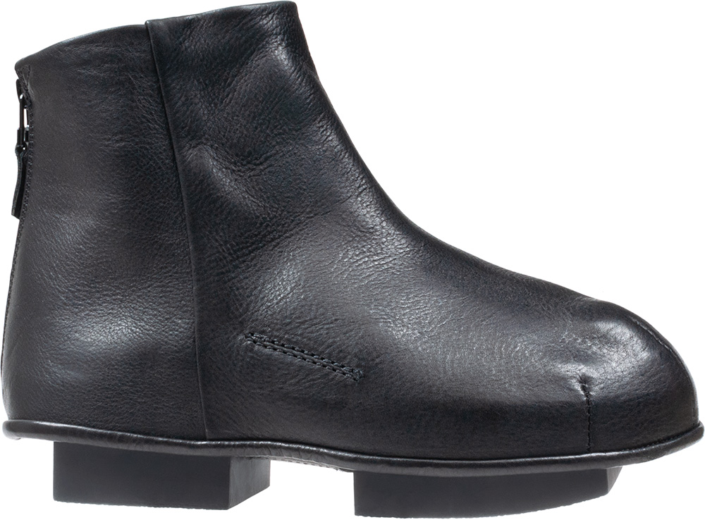 『VAGUE × trippen』ソールを覆うようなボリュームのあるデザイン。アッパーは2層になっていて、アウトソール中央のベルクロテープで止められています。イスラエルのデザイナー「Anuk Yosebashvili」と 「Yaron Shmerkin」によって2016年に設立されたジェアンダーレス、機能性、包括性に取り組むブランド「VAGUE」。trippenとVAGUEはともに流行を超越した哲学を掲げ、時の試練に耐えるデザインの創造に努めています。今回のコラボレーションでは、ボリュームのあるオーバーコートがソールの上に覆いかぶさっているように見える、魅力的なクロッグとブーツを開発しました。