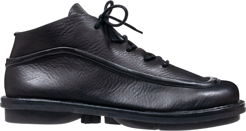 くるぶし丈のクラシカルなユニセックスシューズ。靴の周りを走るパイピングがアッパーに印象的な雰囲気を与えています。通常よりやや大きめのサイズ感。