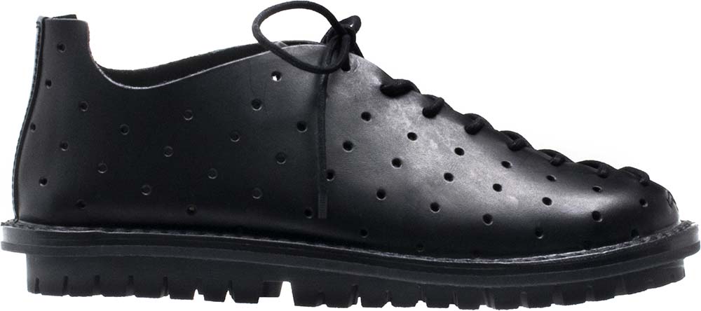 trippenのクラシックモデル。ゴルフボールをモチーフとしたパンチングレザーと、つま先から続く長いシューレースがスポーティーな印象です。