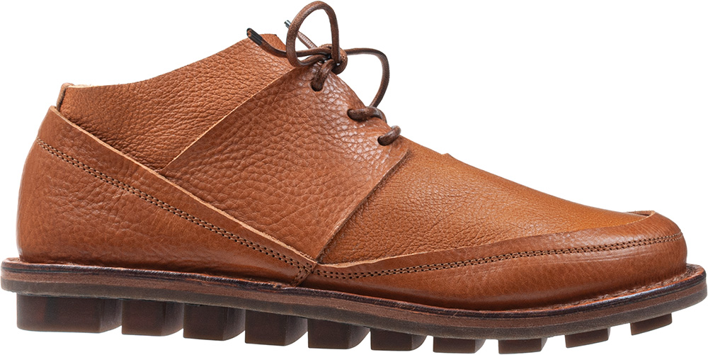 日常履きに適した丈夫なレースアップシューズ。ベース部分には柔らかい鹿革を使用し、つま先、かかと、紐の部分は牛革で補強しています。
