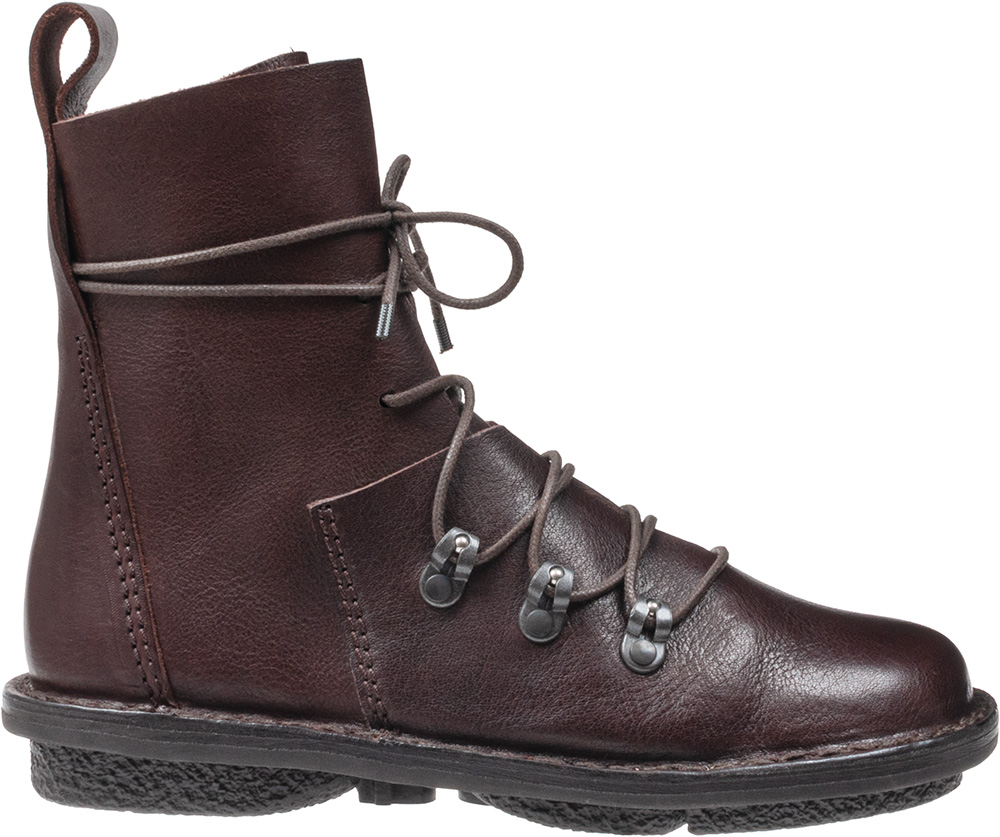 ユニセックスなレースアップブーツ。縦方向のステッチラインと、脱構築的なフォルムが特徴です。