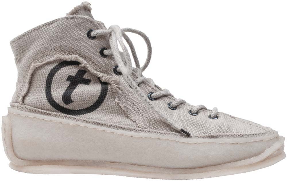 98%生分解性の材料で作られたユニセックスのハイカットスニーカー。天然ゴムのソールは3層になっており、2度縫い付られています。アッパーはベルギーのリネン製郵便バッグでできています。