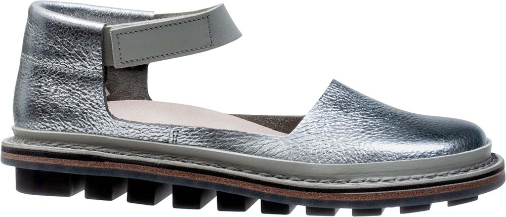 両サイドが大きく開いたバレリーナシューズ。くるぶしを一周するベルクロストラップにより、安定感のある履き心地です。