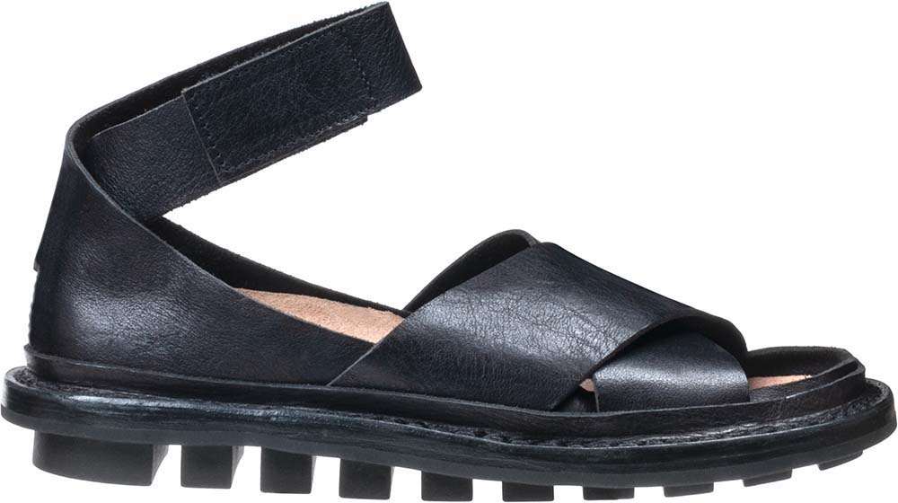 足首のベルクロストラップにより、安定した履き心地のサンダル。足囲をめぐる革のラインが機能的かつ魅力的で、靴下とも好相性です。