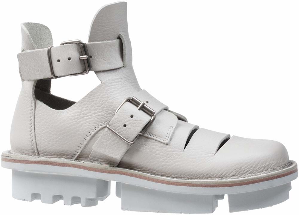 がっしりとタフな足首丈のサンダル。アッパーのスリットと2つのバックルにより、ミリタリーの雰囲気があります。