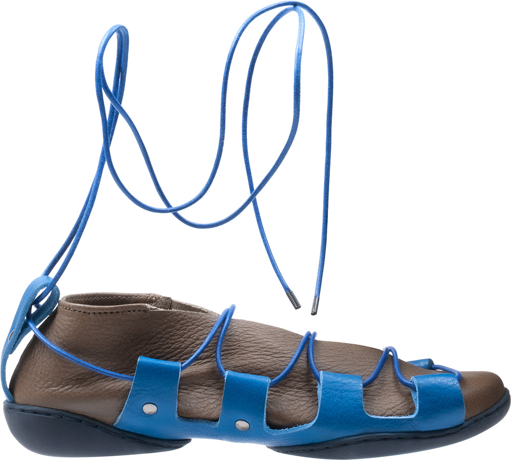 古代ギリシャをイメージした2種類の異なるレザーを使用したレースアップシューズ。