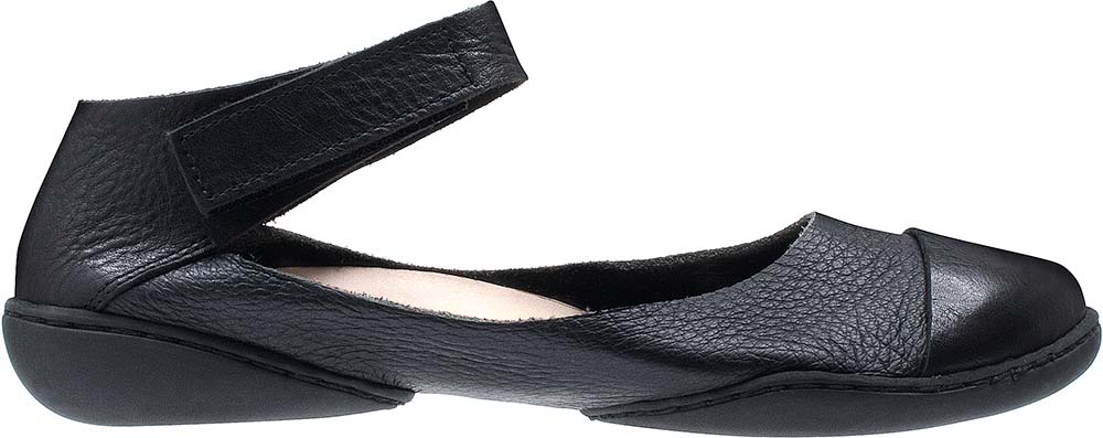 ベルクロストラップのバレリーナシューズ。つま先のレザーは柔らかいインナーを保護し、夏の気温でも軽やかで心地の良い感触を提供します。