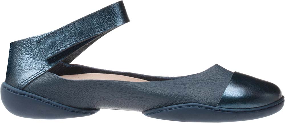ベルクロストラップのバレリーナシューズ。つま先のレザーは柔らかいインナーを保護し、夏の気温でも軽やかで心地の良い感触を提供します。