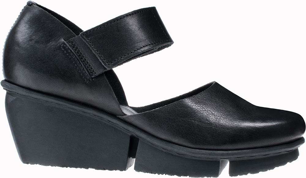 サイドが深くカットされたミニマルなパンプス。幅広のベルクロストラップが甲を理想的にホールドします。