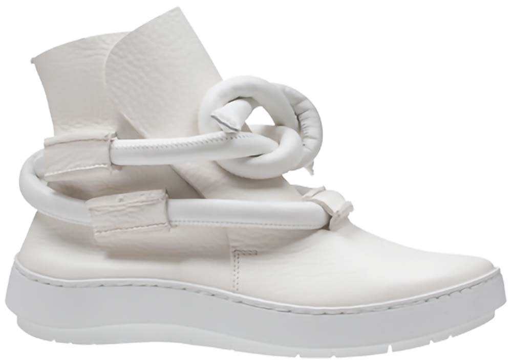 スリッポン・ブーツ。内側にはゴムを使用。足首に巻かれている太い革コードは、船のロープをイメージしています。