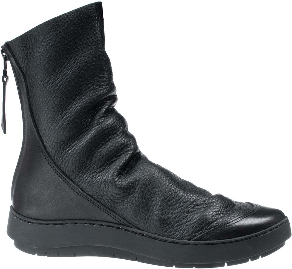繊細なドレープが美しいスポーティなアンクルブーツ。踵とつま先のしっかりしたレザーパーツが、柔らかいアッパーに安定感を与えます。踵のファスナーで着脱が容易です。