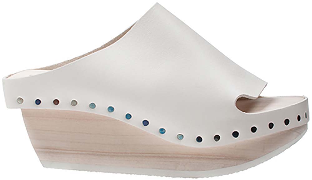 大胆なデザインのウッドソールサンダル「Parasol」。ソールは、外側が斜行して削られたデザインとなっております。