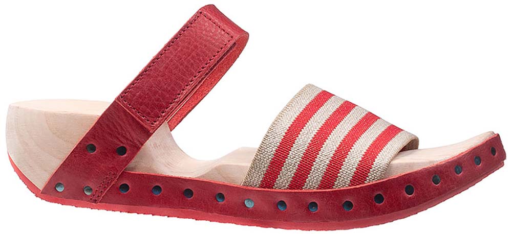伸縮性のあるリネンのゴムバンドとウッドソールが夏らしい一足です。