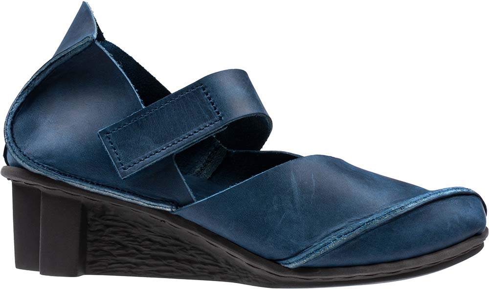 やや尖った形状と甲を斜めに走るベルクロストラップがエレガントなパンプス。